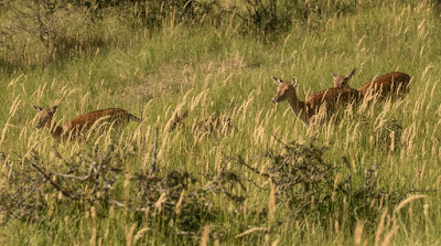 Mal som možnosť podvečer pozorovať zmiešané stádo jeleních, danielích matiek s mladými. Dokonca aj prasačia mama využívala komfort kolektívnej bezpečnosti. Všetci sa pokojne pásli na lúke v tieni priľahlého lesa. Len sem tam sa medzi nimi objavili zblúdené mladé jelene.