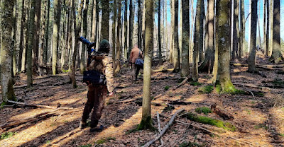 Samička sedela v dutine na znáške a samček posedával na konároch blízkych stromov. Vyštartoval keď sa na zemi pohla ryšavka alebo hrdziak. Bol mimoriadne úspešný. Zopár útokov sa mi podarilo zachytiť. Potom však odletel vysoko do korún a tam si úlovok odložil. Asi už bol sýty. O krátku chvíľu znovu zaujal pozíciu a striehol na hlodavce. My ako keby sme tam ani neboli.