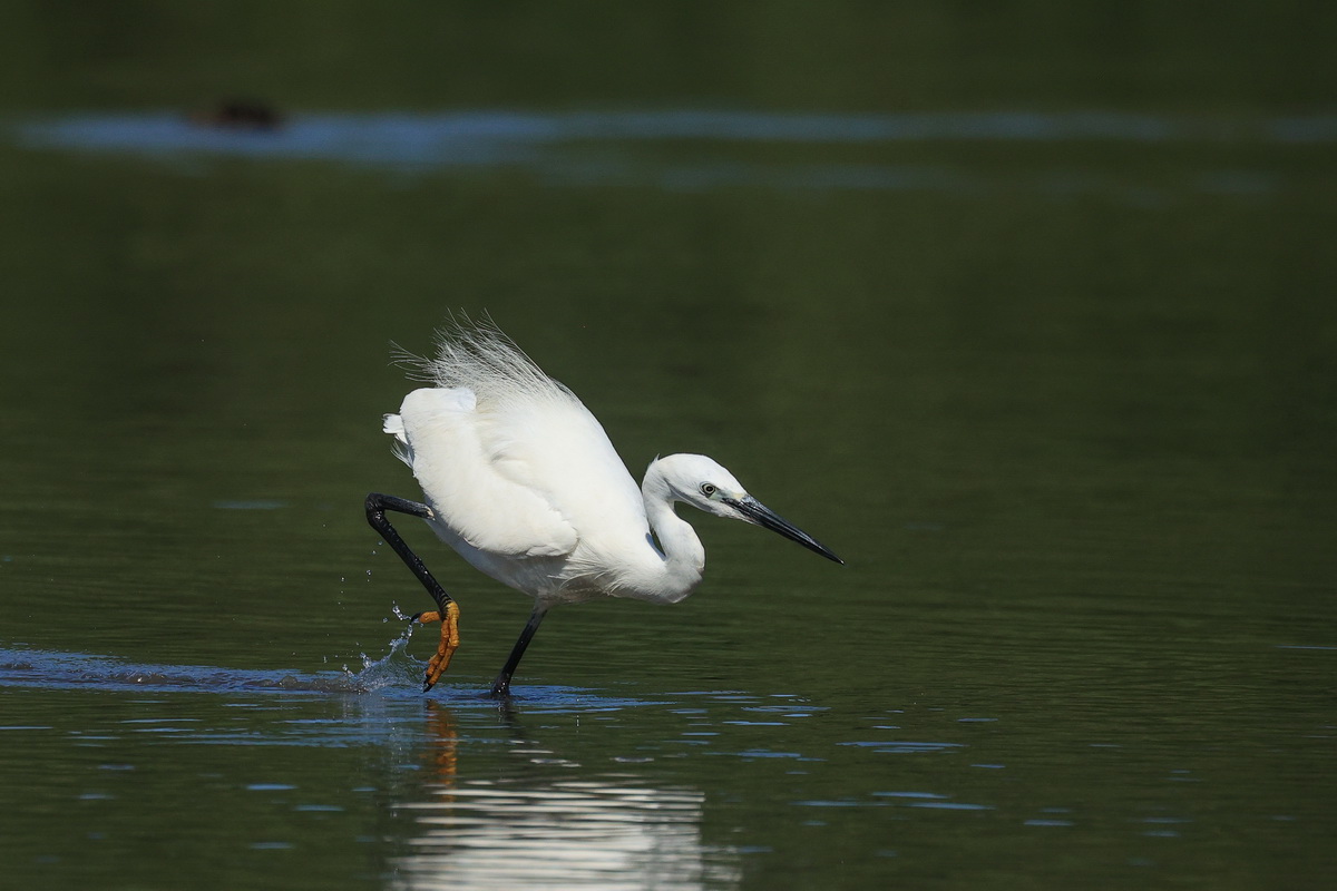 Počas minulého fotenia na rieke Mur mi Beluše malé pred objektív neprileteli. Boli preto pre mňa prekvapením. Nečakal som ich. Očividne už niekde vyinde vyviedli mladé a teraz po zvyšok leta sa môžu všetky, mladé aj staré, venovať len rybolovu. Beluše boli na hladine po celé dni. Vôbec neodlietali ani nepsedávali na stromoch. Neustále mali nohy vo vode. Ich spôsob lovu je veľmi atraktívny. Pobehujú sem a tam a plašia drobné rybky. Keď sa tie pohnú, pozbiera ich ako kura zrno. Celé dni lovili rybky veľkosťou vhodné skôr pre rybáriky. Keď sa húfy malých rybiek rozpŕchli, bieli lovci zareagovali a začali "poletovať" za nimi. Stále behali po vode. Krídla používali len na akceleráciu a na zmenu smeru. Stále sa niečo dialo a fotograf viac nepotrebuje.
