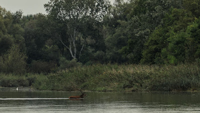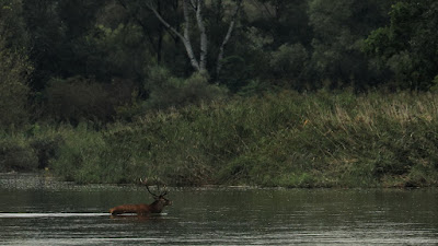 Dovtedy brodili cez hlavné rameno len mladé jelene a lane s mladými. Už by bolo aj načase aby sa objavil nejaký statný paroháč. Tie však mali plné ruky a nohy práce s rujnými laňami. Zrazu prišiel deň D. Do vody vkročili dva statné býky. Samozrejme po jednom. Ten prvý bol väčší, starší a s lepšou trofejou. Druhý bol síce mladší a so slabšími parohami ale môjmu srdcu bližší. Keď už už vchádzal do tŕstia, začal ručať. Poriadne a dlho. Dal mi čas na fotografiu.